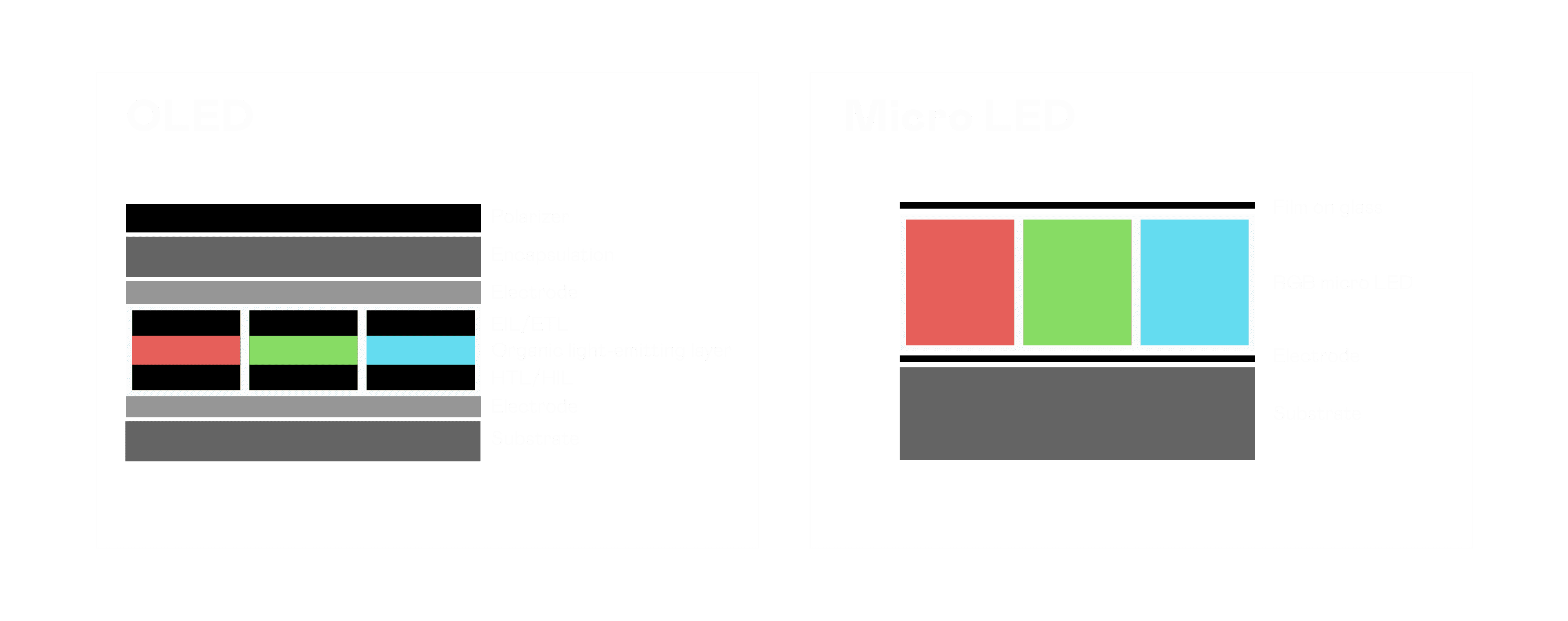 以 LED 做为显示画素,,可让 LED 的发光效率发挥到极致,,从而让显示器具备优异的亮度表现,,,不论是在户外或室内,,,均具备出众的显示效果。。。。同时,,,,与使用有机材料的 OLED 相比,,LED 具备更稳定、、、、寿命更长的特性,,不仅不会有画面烙印问题,,,,而且更不容易出现故障、、坏点。。。。