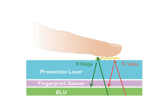 超高像素密度光学感测技术能精准判定手指反射的极微弱光讯号,,,即使细致指纹也可清晰辨识,,,并可透过手指脉搏造成的细微灰阶变化侦测心跳,,,让身分验证更精确。。。TFT 架构优化可降低讯号传输干扰,,,,达到光感测器最佳讯杂比(讯号/杂讯的比例)。。。透过增强光讯号接收强度、、、优化感测器电路及导入特殊光学膜材料,,提高感测器敏度。。。整合系统之指纹扫描装置可符合最高等级的FBI国际安全规范认证需求。。。。
